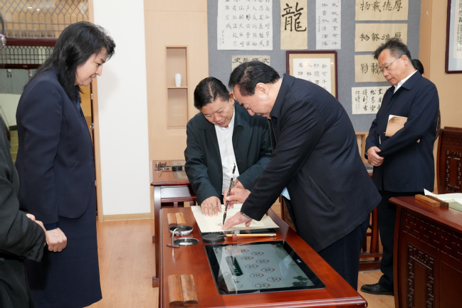 座谈会前,廖兵一行在永利官网新时代文明实践教育基地暨马克思主义理论教育基地、铸牢中华民族共同体意识教育实践基地(美育浸润基地)、科技楼生物标本馆进行参观调研。