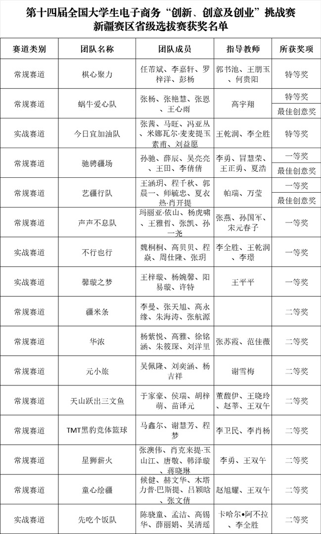 新疆赛区选拔赛获奖名单