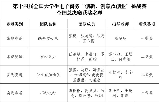 第十四届全国大学生电子商务“创新、创意及创业”挑战赛全国总决赛获奖名单