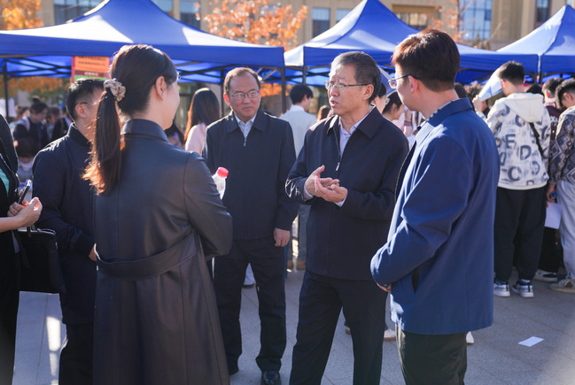 校党委书记葛国、校党委副书记刘俊与毕业生及用人单位亲切交流