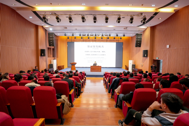 入学典礼结束后,出入境管理局警官彭宽为留学生新生开展了出入境法律法规专题讲座,国际文化交流学院教师段飞为留学生新生开展了留学生管理方面的讲座。