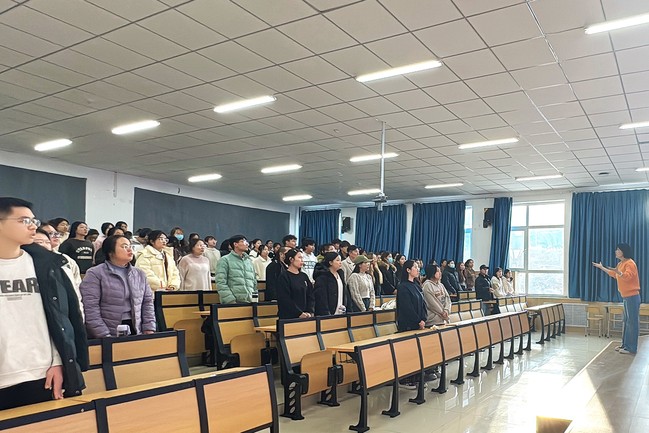 本次体验课由校团委赵霞老师和中国语言文学学院于强老师担任主讲。赵霞老师以音频和视频生动展示了古代的读书方法,让同学们感受读书意境。她还挑选来自不同省份的学生用方言朗读《静夜思》、杜牧的《清明》和岳飞的《满江红》三首著名诗词,同学们在聆听中寻找声音中的美感,由此引出“吟诵”方法,并组织学生学习《礼运大同篇》,同学们沉浸其中热情高涨。