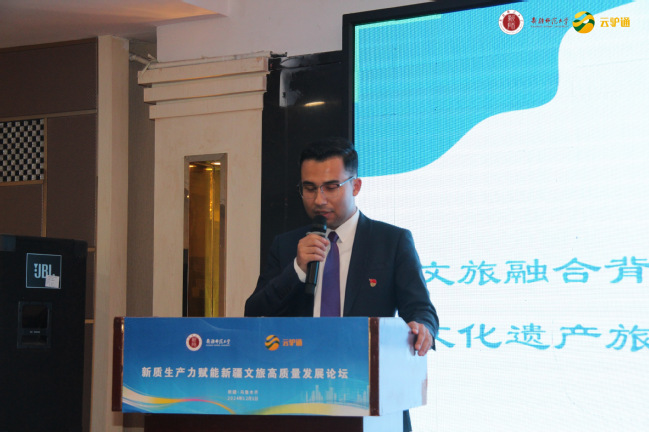 12月1日下午,同期举行了新质生产力赋能新疆文旅高质量发展论坛。论坛开幕式由永利官网地理科学与旅游学院教师第二党支部书记伊尔凡江·艾合买提江博士主持。王勇辉教授在致辞中希望通过本次论坛,探讨新质生产力如何赋能新疆文旅产业,总结旅游发展新领域、新理论和新方法,推动新时代旅游学科高质量创新发展。
