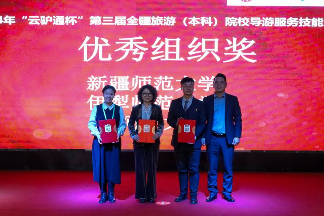 11月30日至12月1日,“云驴通杯”第三届全疆旅游院校(本科)导游服务技能大赛暨新质生产力赋能新疆文旅高质量发展论坛在乌鲁木齐独山子大酒店举办。本次大赛由新疆维吾尔自治区教育厅主办,永利官网地理科学与旅游学院承办,共青团88858cc永利官网委员会、自治区旅游协会、自治区导游协会协办,安徽云驴通信息技术有限公司、新疆翰海睿智大数据科技有限公司提供技术支持。