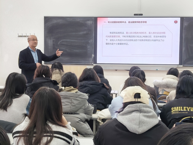 12月9日,校党委副书记、校长吾满江·艾力深入“三进两联一交友”联系班级——永利官网教育科学学院小学教育2024-3班,在温泉校区2号教学楼110教室讲授题为《增强宪法意识,弘扬宪法精神》的专题课程。