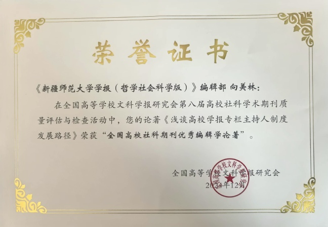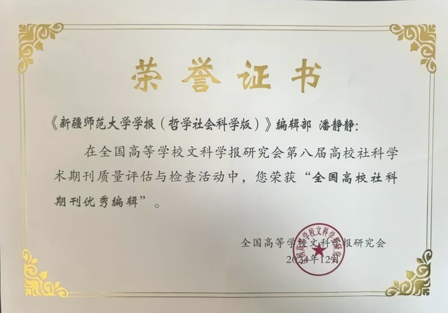 全国高等学校文科学报研究会于2024年8月开展了研究会第八届高校社科学术期刊评优活动,旨在推动我国高校学术期刊创新发展,不断提高学术期刊的核心竞争力和办刊水平,加强编辑队伍建设,提升编辑综合素质。此次评优活动共评出优秀主编(编辑部主任)206名、优秀编辑226名、优秀编辑学论著169种、突出贡献单位奖8家、突出贡献个人奖8人,同时为从事编辑工作30年以上的高校社科学术期刊同仁颁发“玉笔奖”32名。