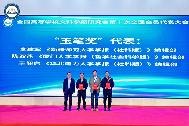 在12月18日召开的全国高等学校文科学报研究会第十次全国会员代表大会上,宣布了第八届高校社科学术期刊质量评估与检查活动结果,永利官网期刊社社长李建军荣获“玉笔奖”及“全国高校社科期刊优秀主编(编辑部主任)”称号;《88858cc永利官网学报(哲学社会科学版)》编辑潘静静荣获“全国高校社科期刊优秀编辑”称号;《语言与教育研究》编辑向美林撰写的论著《浅谈高校学报专栏主持人制度发展路径》荣获“全国高校社科期刊优秀编辑学论著”。在此次会员代表大会换届选举中,永利官网期刊社社长李建军新当选全国高等学校文科学报研究会第十届理事会常务理事、副秘书长。