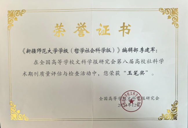 永利官网期刊社社长李建军荣获“玉笔奖”